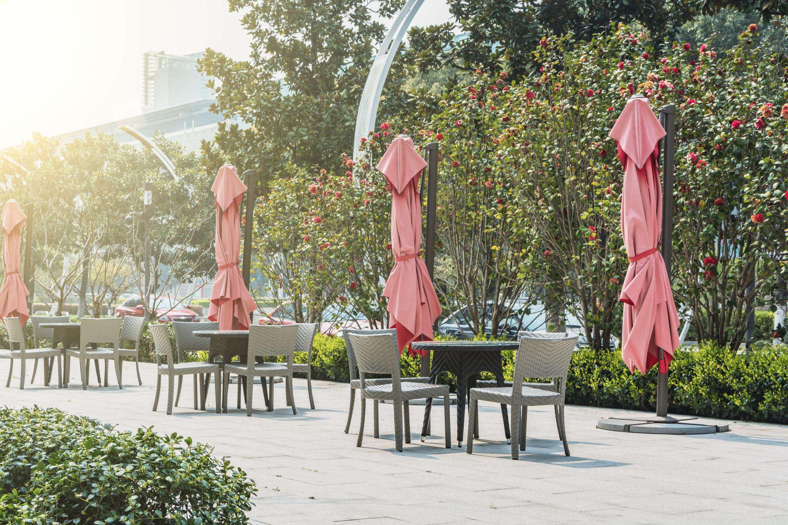 Pergolas, flower beds, gazebos, yoga spaces, and landscaped gardens at top terrace all contribute to the tranquil ambiance just above the hustle and bustle of the city.